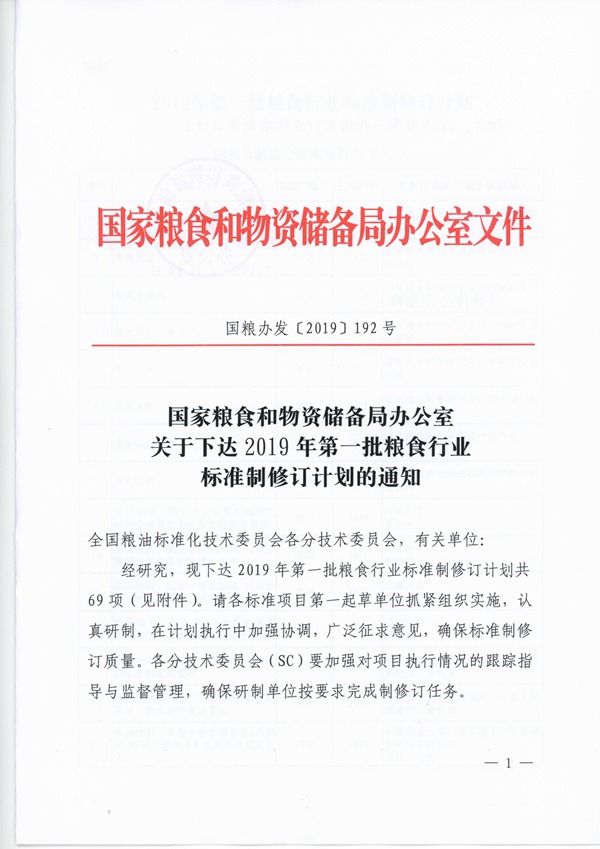 2019年第一批糧食行業(yè)標(biāo)準(zhǔn)制修訂計(jì)劃
