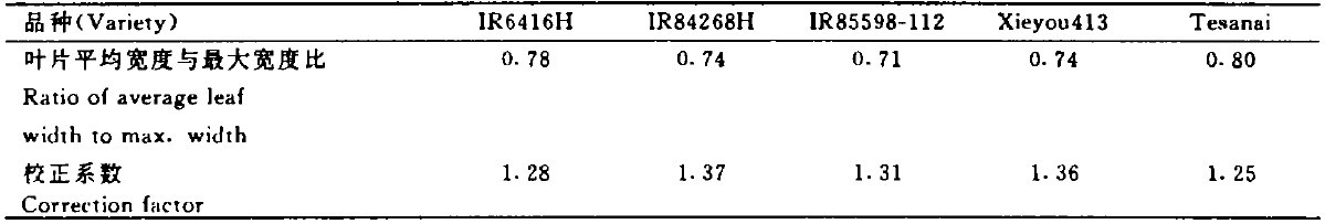 參數法計算葉面積中所用的校正系數(傳統用的1.2)實際上是對葉片寬度的校正。如上所述,反映葉片寬度在葉片上的變化因子—平均葉片寬度與最大寬度的比值在品種問有一定差異,這就使得在不同葉形品種采用參數法相同的系數,造成測得的葉面積的誤差。