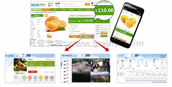 春秋農莊在生鮮電商生態系統上,通過托普農業物聯網系統建立臍橙質量安全溯源檔案,向消費者全方位地展示臍橙的生長環境、農事管理(用肥用藥)、采摘等環節、為消費者提供真實可靠的產品信息,使之購買放心。