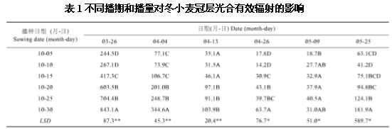 一、播期對冬小麥冠層底部光合有效輻射量的影響