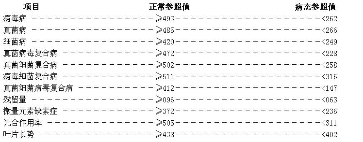 首先,打開電源,儀器會進入自檢狀態(tài),檢測槽緩慢移出,等待測試;接著我們要把截取植物的根、莖、葉剪碎后放置于塑料碗中,數(shù)量大約可以控制在塑料碗容積的三分之一至五分之一;然后用滴管分別吸取等量的五種指示液,滴入盛有植物的塑料碗中,均勻攪拌,放置二到三分鐘等待檢測;用清水沖洗滴管后吸取指示劑和植物碎片的少許混合液,均勻地涂抹在指示條上,將指示條放入測試槽中,并將彩條塊朝上;最后只需輕輕按動“測試”鍵,聽到“嘟”一聲后,植物病害快速診斷儀開始檢測,測試槽和指示條緩慢移至儀器中,儀器還會自動打印檢測結果。測試結果我們可以參照下面的進行分析用藥: