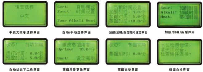定氮儀蒸餾器采用微電腦進行過程控制,包括手動模式和自動模式,可根據您的需要自行設定和切換: