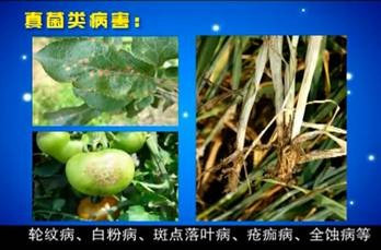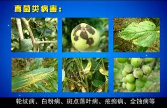 真菌類:灰霉病、霜霉病、猝倒病、枯黃病、立枯病、早晚疫病、莖枯病、蔓枯病、黑星病、黑斑病、銹病、輪紋病、白粉病、斑點(diǎn)落葉病、瘡痂病、全蝕病;
