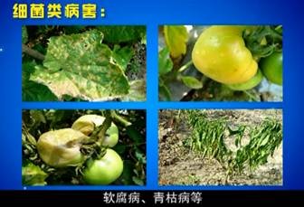 細(xì)菌類病害:潰腸病、細(xì)菌性角斑病、軟腐病、青枯病;